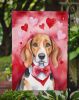 Garden Flag featuring breed specific American Foxhound artwork. Celebrate Valentine's Day with this Valentine's Day Garden Flag. Enhance the beauty of your garden, patio, or yard with Caroline's Treasures Decorative Garden Flag, proudly made in the USA. Crafted from two pieces of thick, double-sided polyester fabric, this 2-ply garden flag is designed to withstand various weather conditions, making it water-resistant and weatherproof. Featuring correctly readable words on both sides, this garden flag offers a delightful visual experience from any angle. With its heavier weight, it stands out among other garden flags, ensuring stability and durability even in wind, rain, and snow. Measuring approximately 11 1/4 inches by 15 1/2 inches, this flag allows you to personalize your outdoor decor. It comes with a 1 1/2-inch sleeve sewn in, allowing easy attachment to any standard garden flag stand or garden size porch hanger (sold separately). Make a statement in your outdoor space with Caroline's Treasures Decorative Garden Flag, a vibrant and high-quality flag that adds color and personality to your surroundings. Proudly made in the USA, it's a symbol of quality craftsmanship and attention to detail.