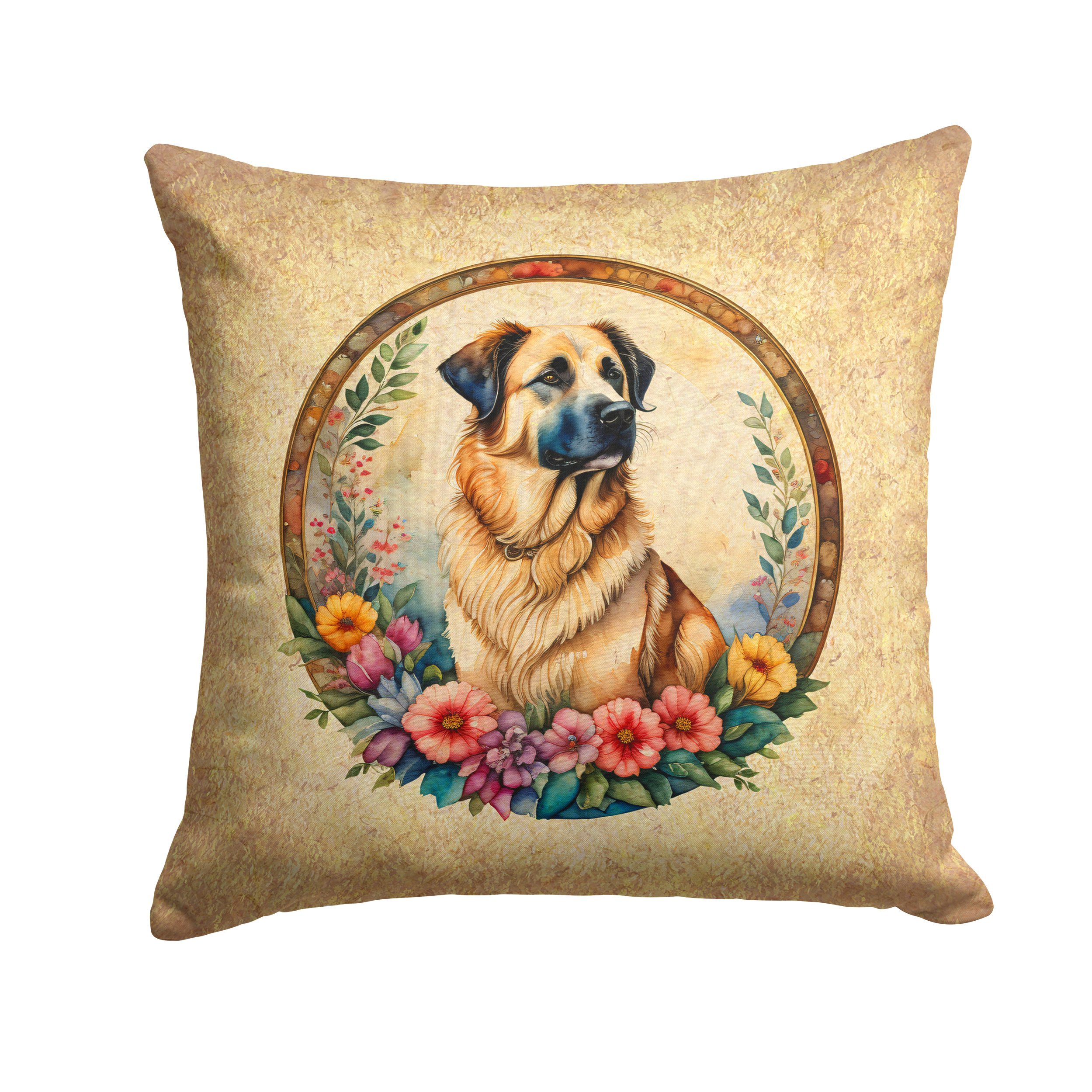 Anatolian Shepherd Dog and Flowers Throw Pillow Machine Washable, Indoor Outdoor Decorative Pillow for Couch, Bed or Patio, 14Hx14W