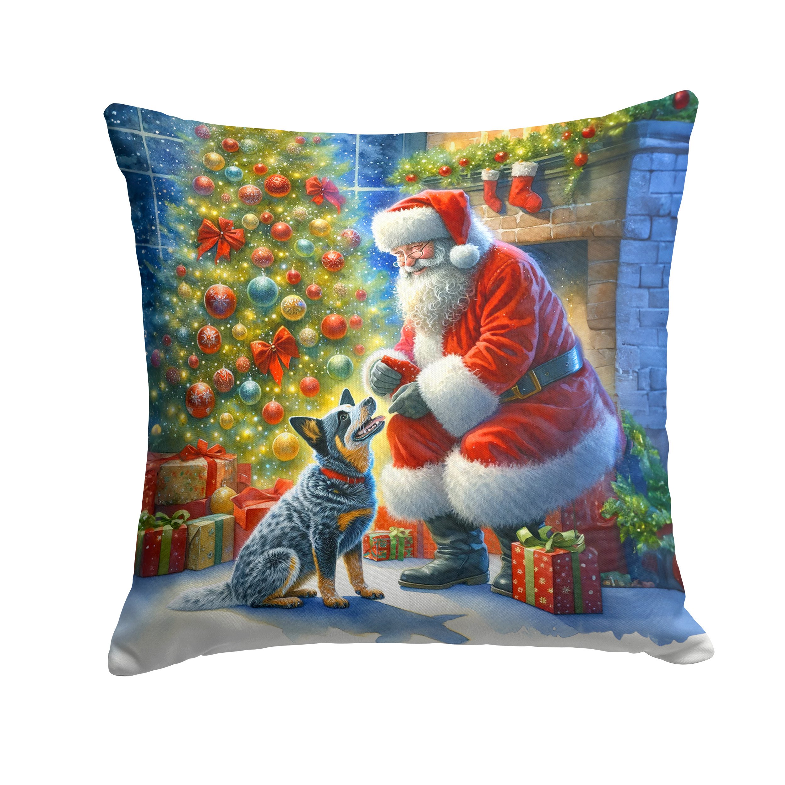 Home > Australian Cattle Dog and Santa Claus Throw Pillow Machine Washable, Indoor Outdoor Decorative Pillow for Couch, Bed or Patio, 14Hx14W
