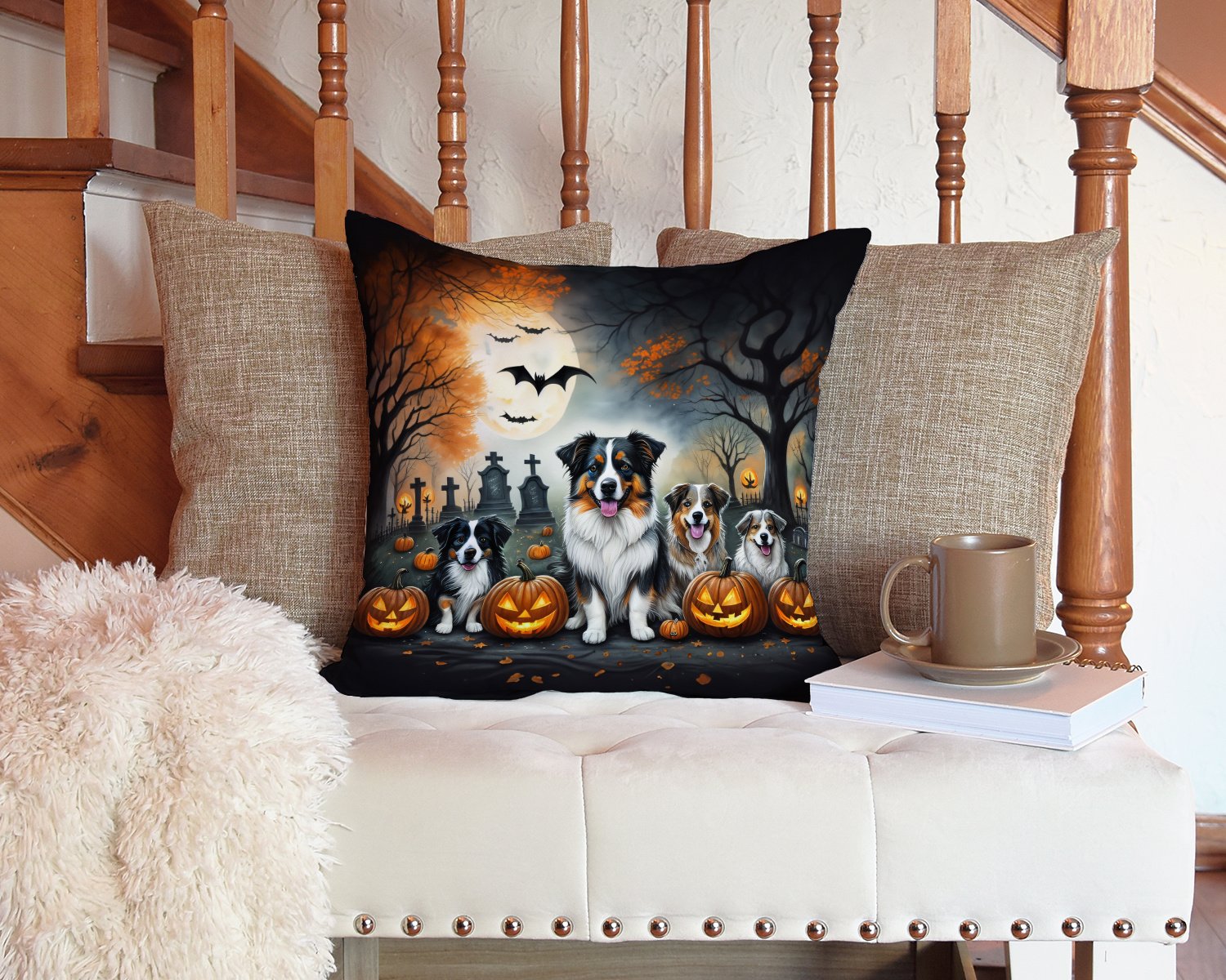 Australian Shepherd Spooky Halloween Throw Pillow Machine Washable, Indoor Outdoor Decorative Pillow for Couch, Bed or Patio, 14Hx14W