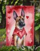 Garden Flag featuring breed specific Belgian Malinois artwork. Celebrate Valentine's Day with this Valentine's Day Garden Flag. Enhance the beauty of your garden, patio, or yard with Caroline's Treasures Decorative Garden Flag, proudly made in the USA. Crafted from two pieces of thick, double-sided polyester fabric, this 2-ply garden flag is designed to withstand various weather conditions, making it water-resistant and weatherproof. Featuring correctly readable words on both sides, this garden flag offers a delightful visual experience from any angle. With its heavier weight, it stands out among other garden flags, ensuring stability and durability even in wind, rain, and snow. Measuring approximately 11 1/4 inches by 15 1/2 inches, this flag allows you to personalize your outdoor decor. It comes with a 1 1/2-inch sleeve sewn in, allowing easy attachment to any standard garden flag stand or garden size porch hanger (sold separately). Make a statement in your outdoor space with Caroline's Treasures Decorative Garden Flag, a vibrant and high-quality flag that adds color and personality to your surroundings. Proudly made in the USA, it's a symbol of quality craftsmanship and attention to detail.