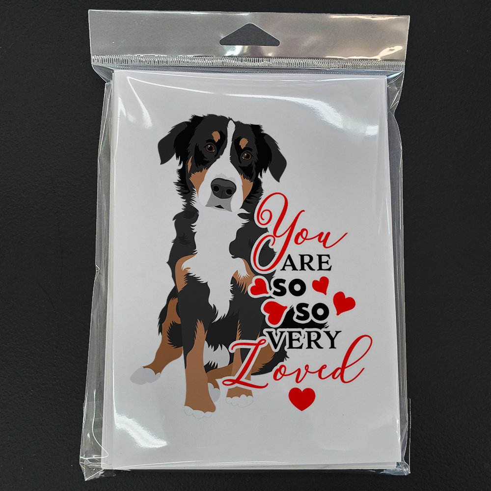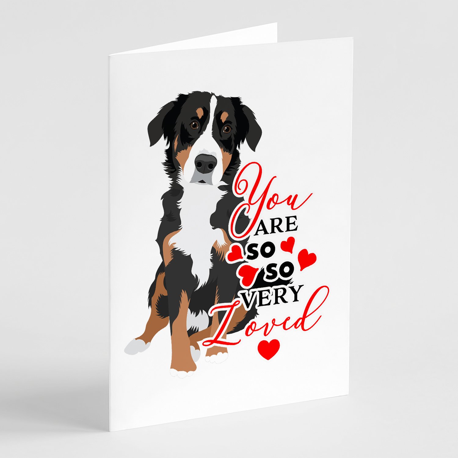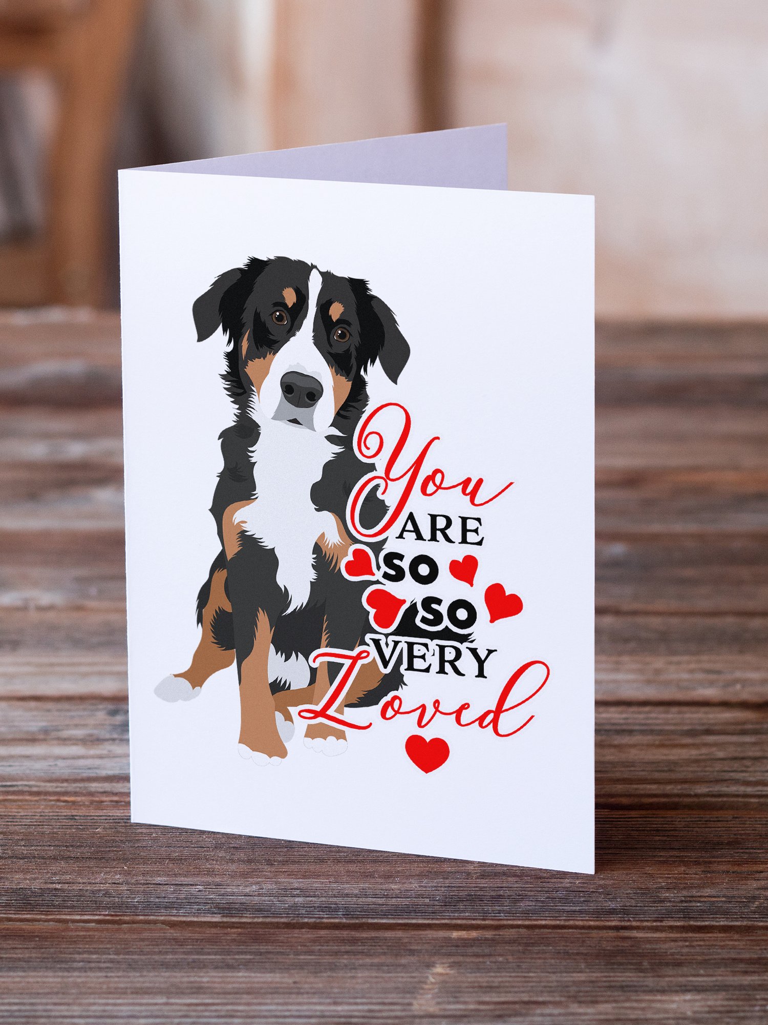 Greeting Cards Pack of 8 featuring breed specific Bernese Mountain Dog artwork. Celebrate Valentine's Day with this Valentine's Day . This Greeting Cards Pack of 8 is from Caroline's Treasures collection You are so so very loved. Celebrate special moments with Caroline's Treasures Printed Greeting Card Pack. This pack includes eight beautifully folded 5x7 cards, accompanied by eight matching white envelopes. With blank interiors, these cards provide ample space for your personalized messages and heartfelt holiday greetings. Each card features captivating full-color artwork, meticulously printed in our facility on high-quality 80 lb cover stock or 216 GSM. The super smooth finish of the white cards enhances the visual impact of the artwork, creating a truly stunning presentation. Designed by our talented in-house artists or licensed artists, the artwork on these cards showcases their creativity and attention to detail. From vibrant illustrations to captivating designs, each card tells its own unique story. Whether it's for birthdays, anniversaries, holidays, or any special occasion, Caroline's Treasures Greeting Card Pack is the perfect way to convey your heartfelt sentiments. Share joy, love, and warm wishes with these exquisite cards and make every moment unforgettable.