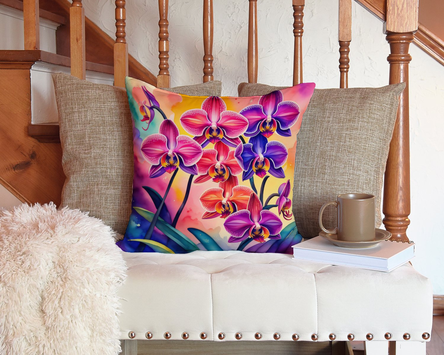 Colorful Orchids Throw Pillow Machine Washable, Indoor Outdoor Decorative Pillow for Couch, Bed or Patio, 14Hx14W Colorful Orchids Throw Pillow Machine Washable, Indoor Outdoor Decorative Pillow for Couch, Bed or Patio, 14Hx14W Colorful Orchids Throw Pillow Machine Washable, Indoor Outdoor Decorative Pillow for Couch, Bed or Patio, 14Hx14W