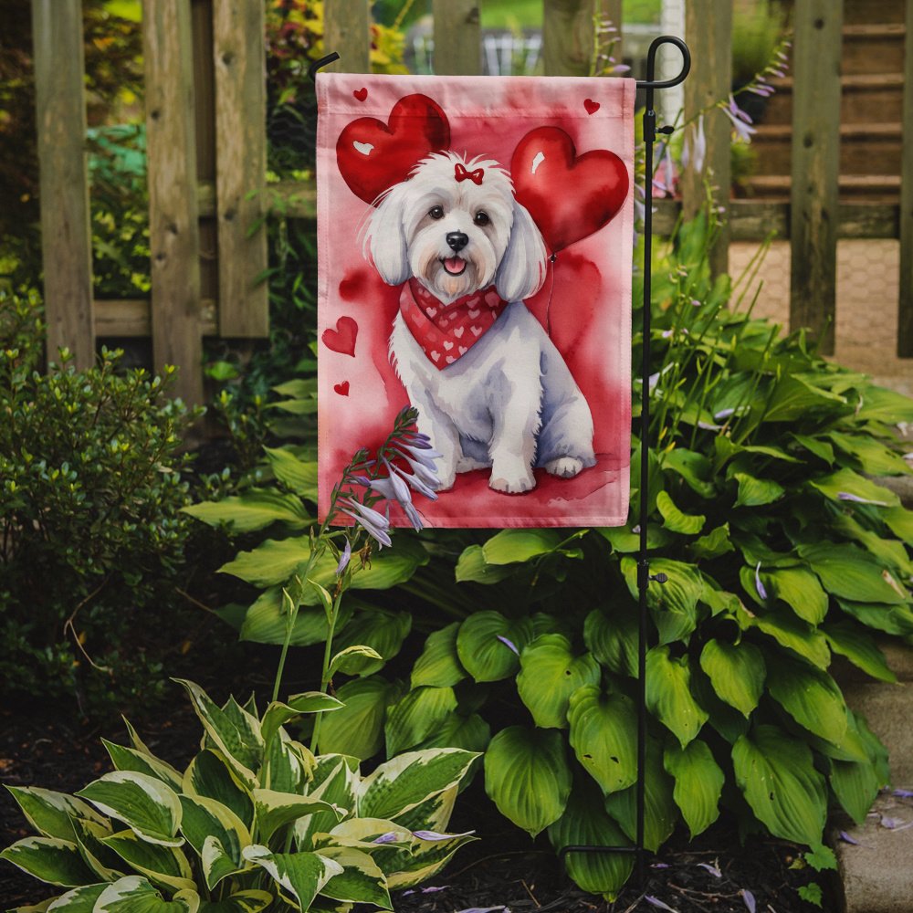 Garden Flag featuring breed specific Coton de Tulear artwork. Celebrate Valentine's Day with this Valentine's Day Garden Flag. Enhance the beauty of your garden, patio, or yard with Caroline's Treasures Decorative Garden Flag, proudly made in the USA. Crafted from two pieces of thick, double-sided polyester fabric, this 2-ply garden flag is designed to withstand various weather conditions, making it water-resistant and weatherproof. Featuring correctly readable words on both sides, this garden flag offers a delightful visual experience from any angle. With its heavier weight, it stands out among other garden flags, ensuring stability and durability even in wind, rain, and snow. Measuring approximately 11 1/4 inches by 15 1/2 inches, this flag allows you to personalize your outdoor decor. It comes with a 1 1/2-inch sleeve sewn in, allowing easy attachment to any standard garden flag stand or garden size porch hanger (sold separately). Make a statement in your outdoor space with Caroline's Treasures Decorative Garden Flag, a vibrant and high-quality flag that adds color and personality to your surroundings. Proudly made in the USA, it's a symbol of quality craftsmanship and attention to detail.