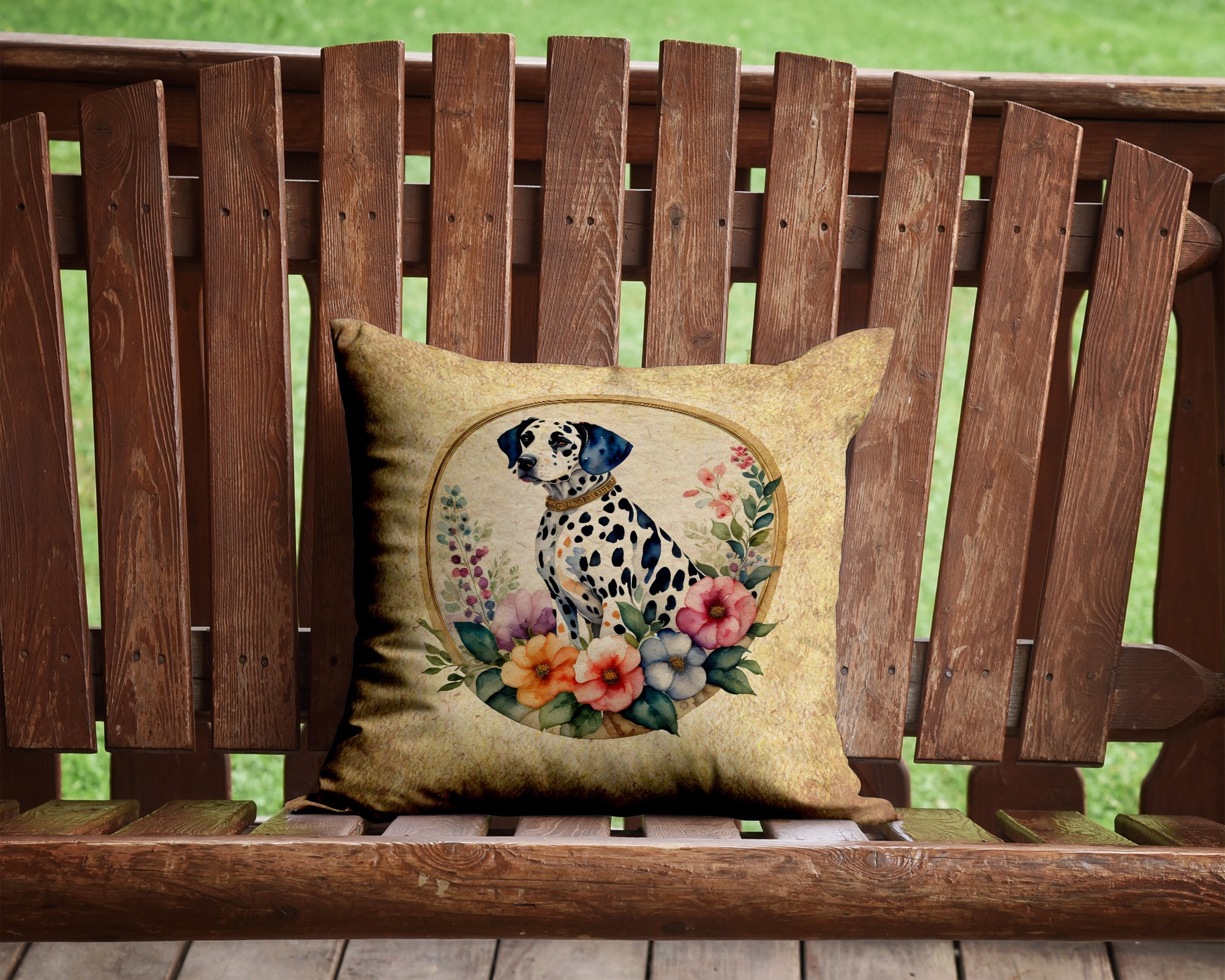 Dalmatian and Flowers Throw Pillow Machine Washable, Indoor Outdoor Decorative Pillow for Couch, Bed or Patio, 14Hx14W