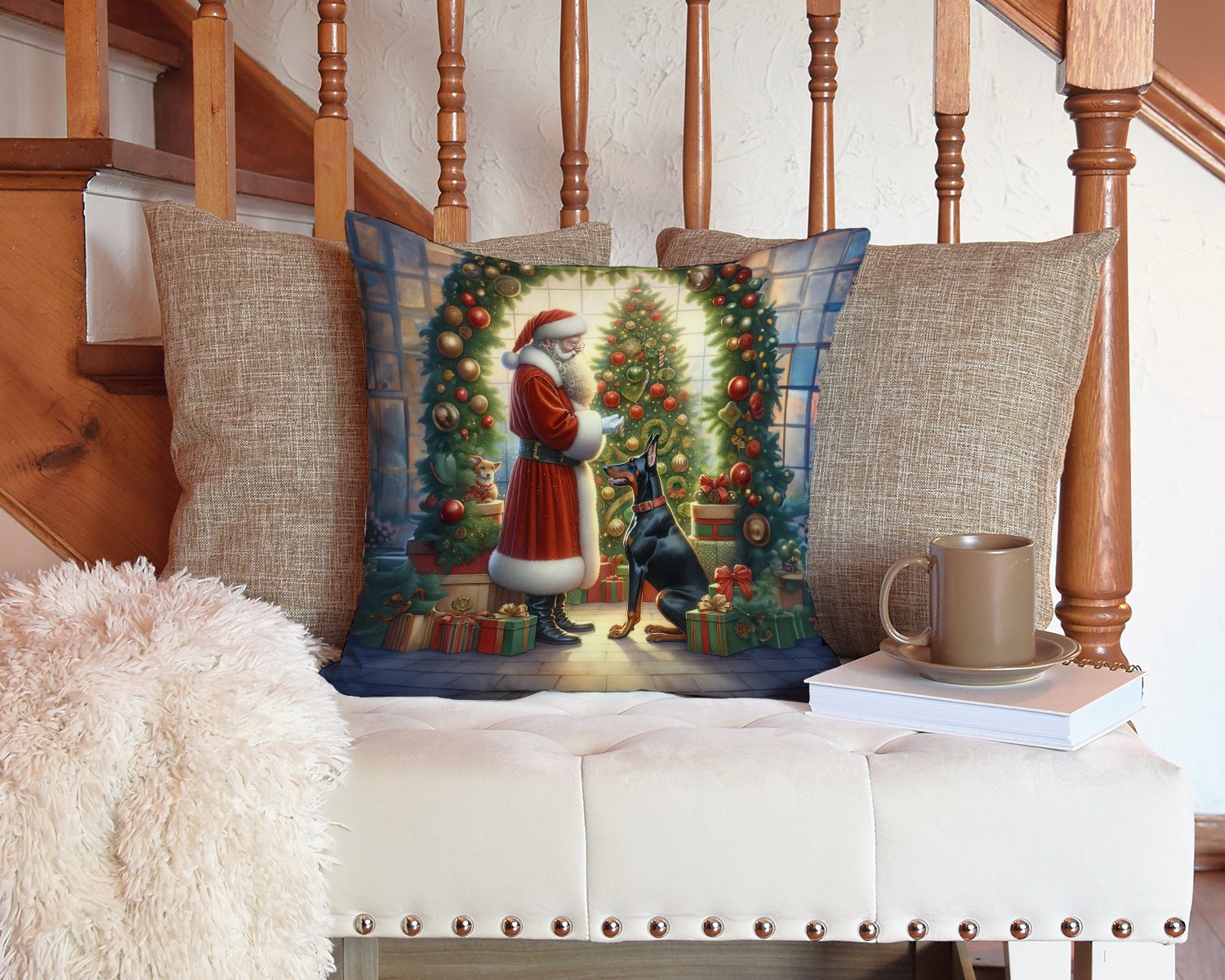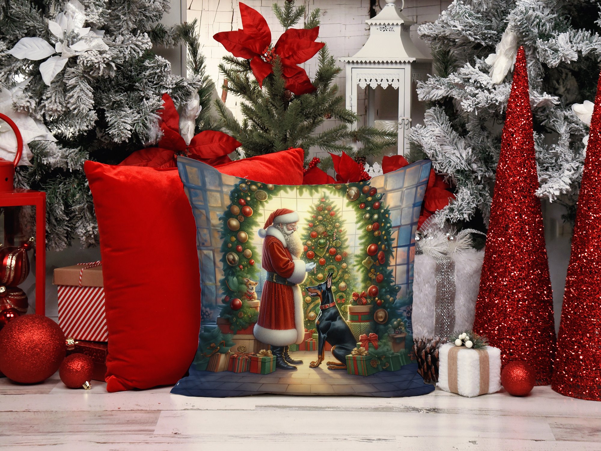 Home > Doberman Pinscher and Santa Claus Throw Pillow Machine Washable, Indoor Outdoor Decorative Pillow for Couch, Bed or Patio, 14Hx14W
