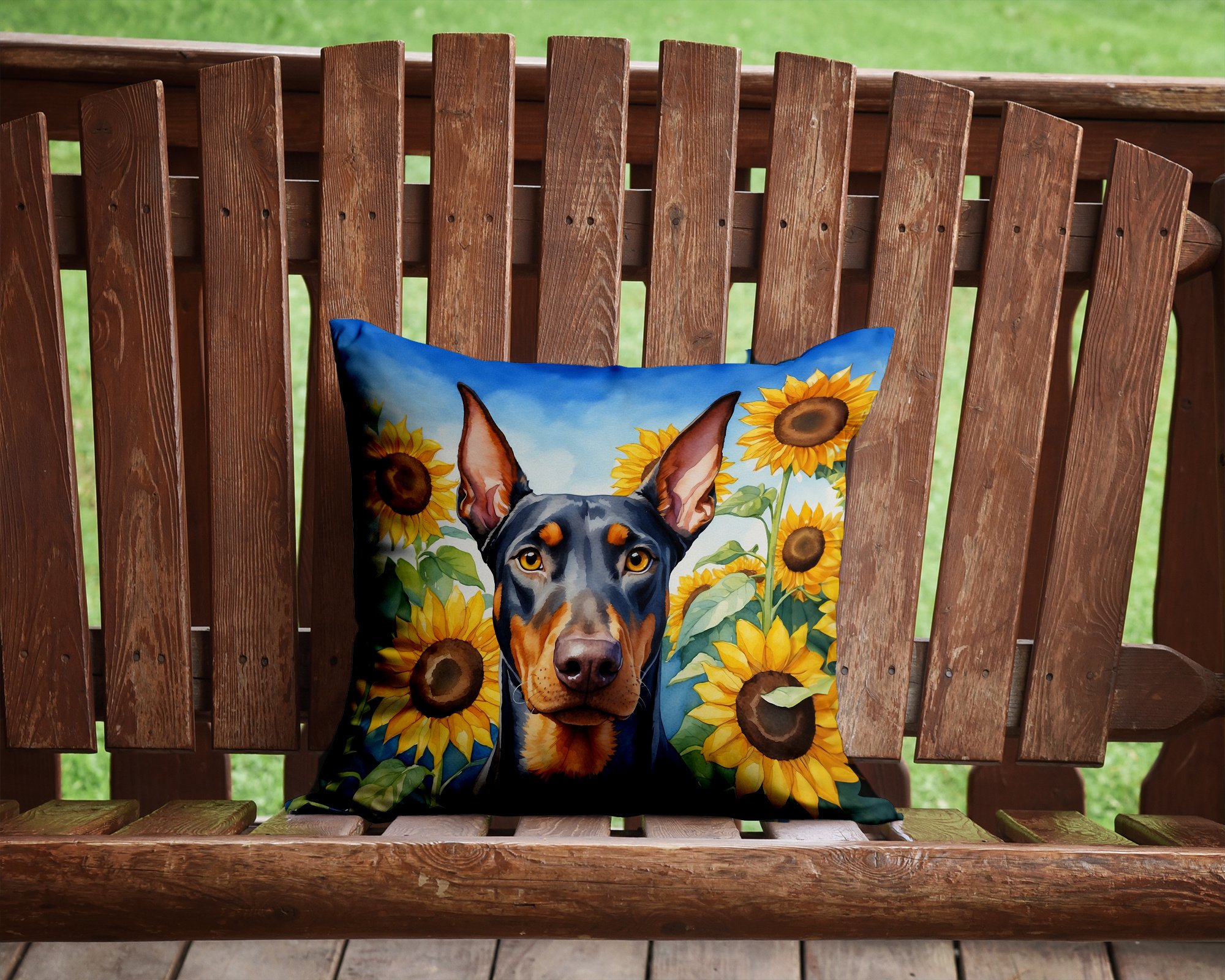 Doberman Pinscher in Sunflowers Throw Pillow Machine Washable, Indoor Outdoor Decorative Pillow for Couch, Bed or Patio, 14Hx14W Doberman Pinscher in Sunflowers Throw Pillow Machine Washable, Indoor Outdoor Decorative Pillow for Couch, Bed or Patio, 14Hx14W Doberman Pinscher in Sunflowers Throw Pillow Machine Washable, Indoor Outdoor Decorative Pillow for Couch, Bed or Patio, 14Hx14W