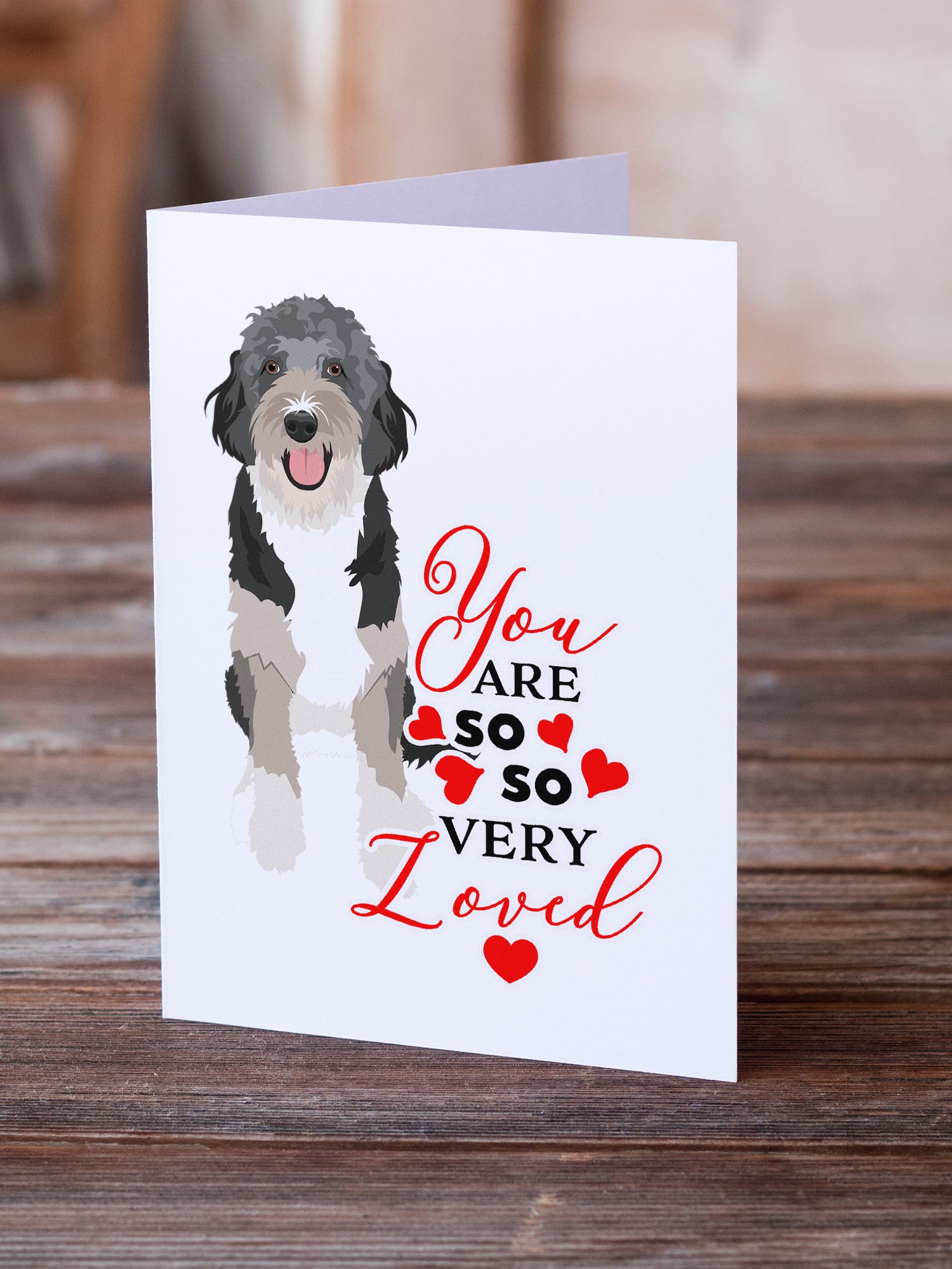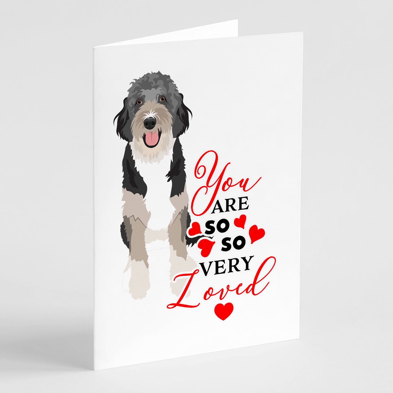 Greeting Cards Pack of 8 featuring breed specific Other Dog Collectibles artwork. Celebrate Valentine's Day with this Valentine's Day . This Greeting Cards Pack of 8 is from Caroline's Treasures collection You are so so very loved. Celebrate special moments with Caroline's Treasures Printed Greeting Card Pack. This pack includes eight beautifully folded 5x7 cards, accompanied by eight matching white envelopes. With blank interiors, these cards provide ample space for your personalized messages and heartfelt holiday greetings. Each card features captivating full-color artwork, meticulously printed in our facility on high-quality 80 lb cover stock or 216 GSM. The super smooth finish of the white cards enhances the visual impact of the artwork, creating a truly stunning presentation. Designed by our talented in-house artists or licensed artists, the artwork on these cards showcases their creativity and attention to detail. From vibrant illustrations to captivating designs, each card tells its own unique story. Whether it's for birthdays, anniversaries, holidays, or any special occasion, Caroline's Treasures Greeting Card Pack is the perfect way to convey your heartfelt sentiments. Share joy, love, and warm wishes with these exquisite cards and make every moment unforgettable.