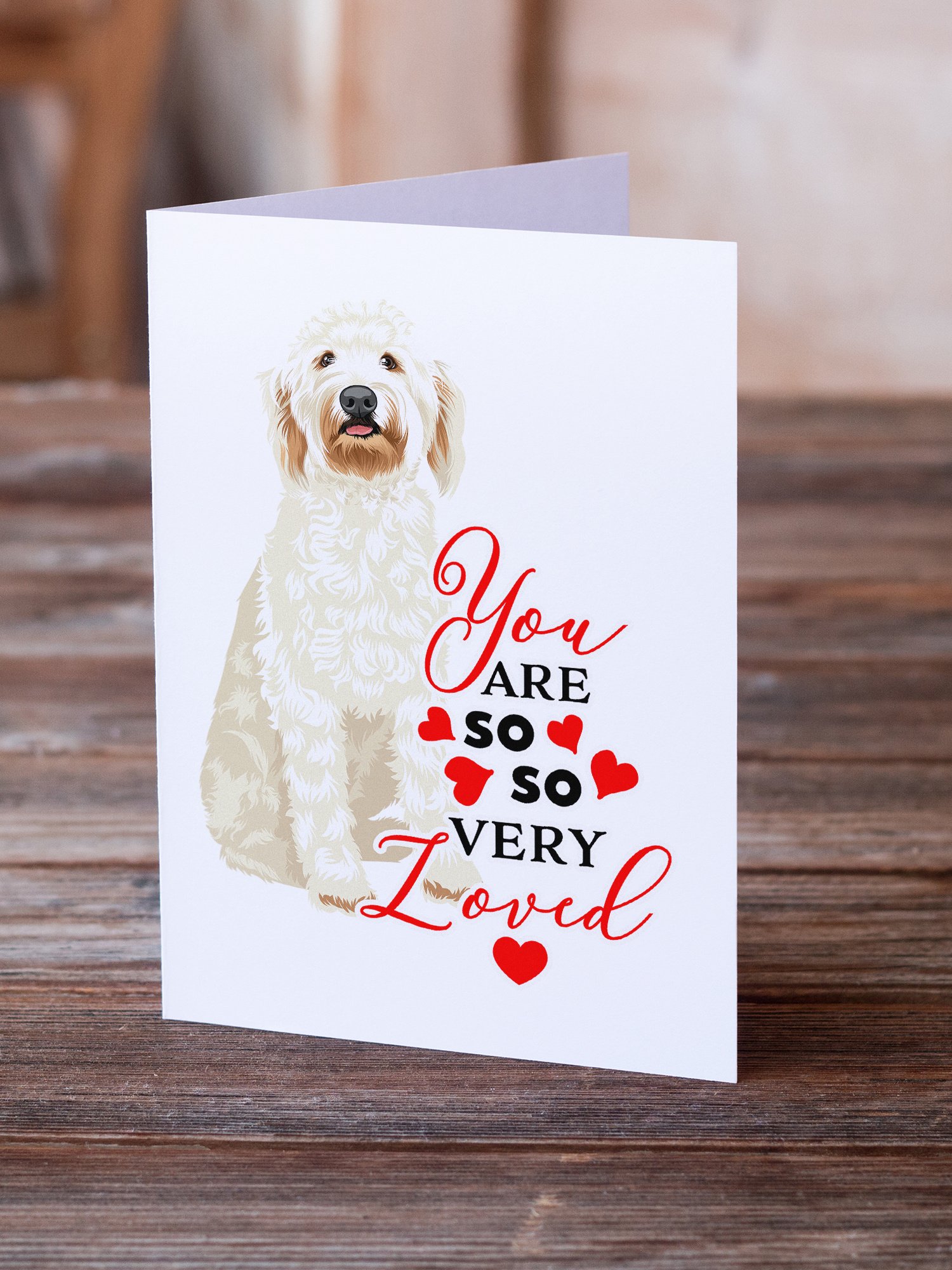 Greeting Cards Pack of 8 featuring breed specific Other Dog Collectibles artwork. Celebrate Valentine's Day with this Valentine's Day . This Greeting Cards Pack of 8 is from Caroline's Treasures collection You are so so very loved. Celebrate special moments with Caroline's Treasures Printed Greeting Card Pack. This pack includes eight beautifully folded 5x7 cards, accompanied by eight matching white envelopes. With blank interiors, these cards provide ample space for your personalized messages and heartfelt holiday greetings. Each card features captivating full-color artwork, meticulously printed in our facility on high-quality 80 lb cover stock or 216 GSM. The super smooth finish of the white cards enhances the visual impact of the artwork, creating a truly stunning presentation. Designed by our talented in-house artists or licensed artists, the artwork on these cards showcases their creativity and attention to detail. From vibrant illustrations to captivating designs, each card tells its own unique story. Whether it's for birthdays, anniversaries, holidays, or any special occasion, Caroline's Treasures Greeting Card Pack is the perfect way to convey your heartfelt sentiments. Share joy, love, and warm wishes with these exquisite cards and make every moment unforgettable.