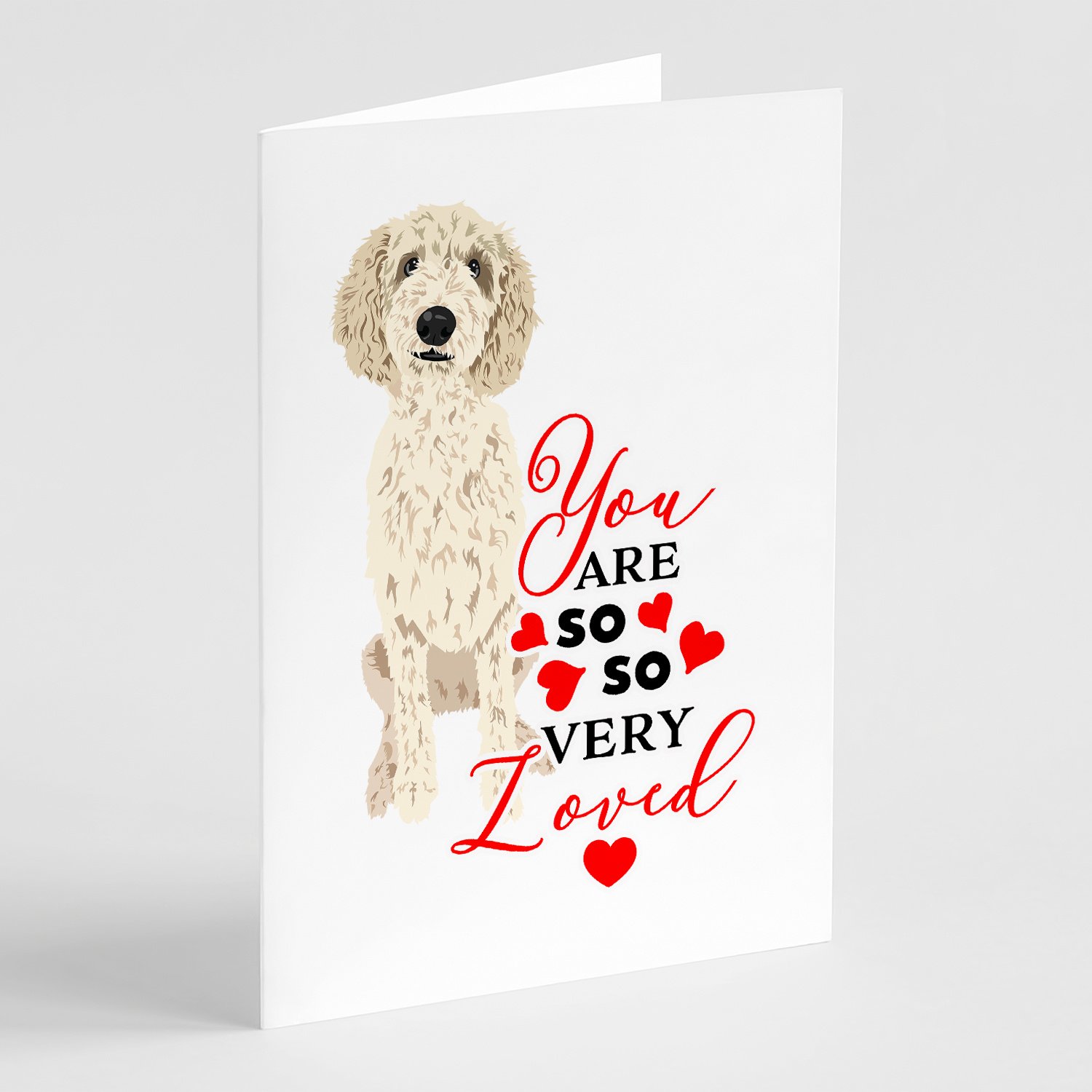 Greeting Cards Pack of 8 featuring breed specific Other Dog Collectibles artwork. Celebrate Valentine's Day with this Valentine's Day . This Greeting Cards Pack of 8 is from Caroline's Treasures collection You are so so very loved. Celebrate special moments with Caroline's Treasures Printed Greeting Card Pack. This pack includes eight beautifully folded 5x7 cards, accompanied by eight matching white envelopes. With blank interiors, these cards provide ample space for your personalized messages and heartfelt holiday greetings. Each card features captivating full-color artwork, meticulously printed in our facility on high-quality 80 lb cover stock or 216 GSM. The super smooth finish of the white cards enhances the visual impact of the artwork, creating a truly stunning presentation. Designed by our talented in-house artists or licensed artists, the artwork on these cards showcases their creativity and attention to detail. From vibrant illustrations to captivating designs, each card tells its own unique story. Whether it's for birthdays, anniversaries, holidays, or any special occasion, Caroline's Treasures Greeting Card Pack is the perfect way to convey your heartfelt sentiments. Share joy, love, and warm wishes with these exquisite cards and make every moment unforgettable.