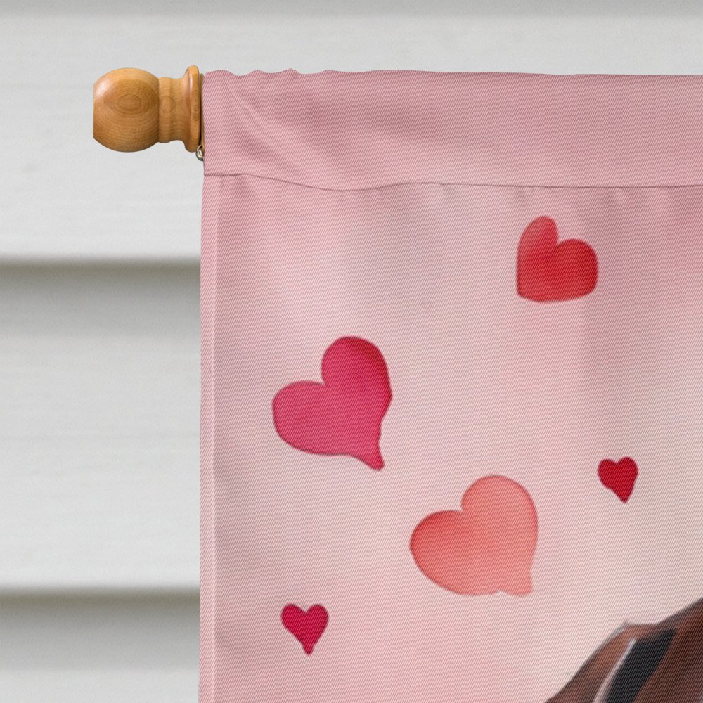House Flag featuring breed specific German Shorthaired Pointer artwork. Celebrate Valentine's Day with this Valentine's Day Large Flag. Presenting our Heavy Duty Polyester House Size Decorative Sleeve Pole Flag, a vibrant addition to enhance the aesthetic appeal of your home. This large decorative flag, measuring approximately 28 x 40 inches, offers ample coverage and visibility. Each flag is meticulously sewn and made individually, ensuring a unique piece that may slightly vary in size. It's a sleeve pole flag, designed to fit a standard decorative flag pole effortlessly. Please note that the flag pole and bracket are not included and should be purchased separately. What sets our flag apart is its dual-sided print. The design is mirrored on both sides of the fabric, allowing for uniform visibility regardless of the angle. Printed in full color, our flag showcases vibrant hues that truly stand out. To ensure lasting vibrancy and durability, the dyes are heat-set into the fabric. This ensures your flag remains bright and captivating through various weather conditions. Elevate the look of your home with our Heavy Duty Polyester House Size Decorative Sleeve Pole Flag!