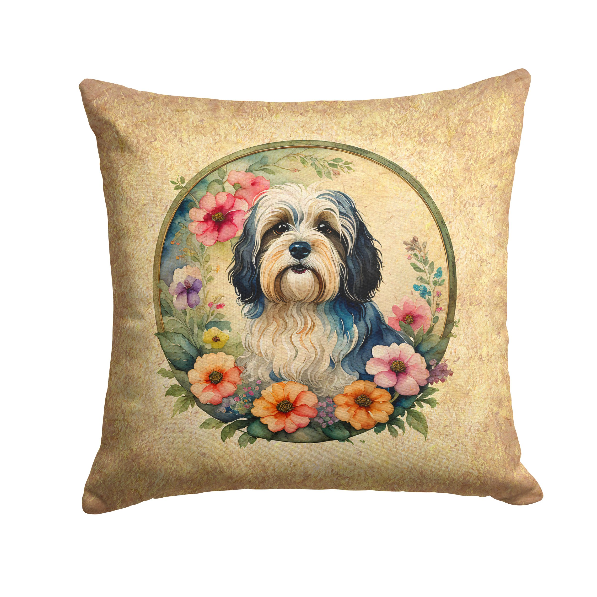 Home > Havanese and Flowers Throw Pillow Machine Washable, Indoor Outdoor Decorative Pillow for Couch, Bed or Patio, 14Hx14W