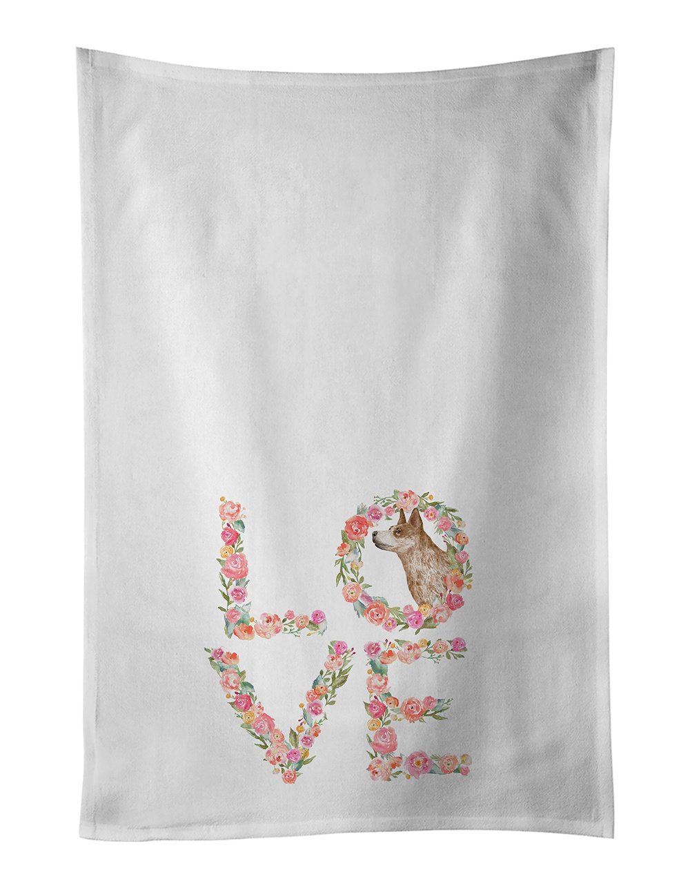 Kitchen Towel Set of 2 featuring breed specific Australian Cattle Dog artwork. Celebrate Valentine's Day with this Valentine's Day Kitchen Cotton Towels. This Kitchen Towel Set of 2 is from Caroline's Treasures collection LOVE. Spruce up your kitchen decor with Caroline's Treasures Decorative White Kitchen Towel Set. This set of two dish towels showcases beautiful artwork from one of our talented artists, making them both practical and visually appealing. These towels are crafted from 100% cotton, offering excellent absorbency and durability, making them ideal for any kitchen task. Each white towel measures 19 inches by 28 inches, providing ample coverage for drying dishes or wiping up spills. The standout feature of these towels is the full-color artwork design printed on each one. They can serve as a vibrant accent in your kitchen, turning a functional item into a delightful piece of decor. When it comes to care, these towels are machine washable in cold water and can be dried on low heat. Remember to always use a pressing cloth when pressing the design, and avoid using bleach on the decorated towel. The Decorative White Kitchen Towel Set makes a great gift or a stylish addition to your own kitchen.