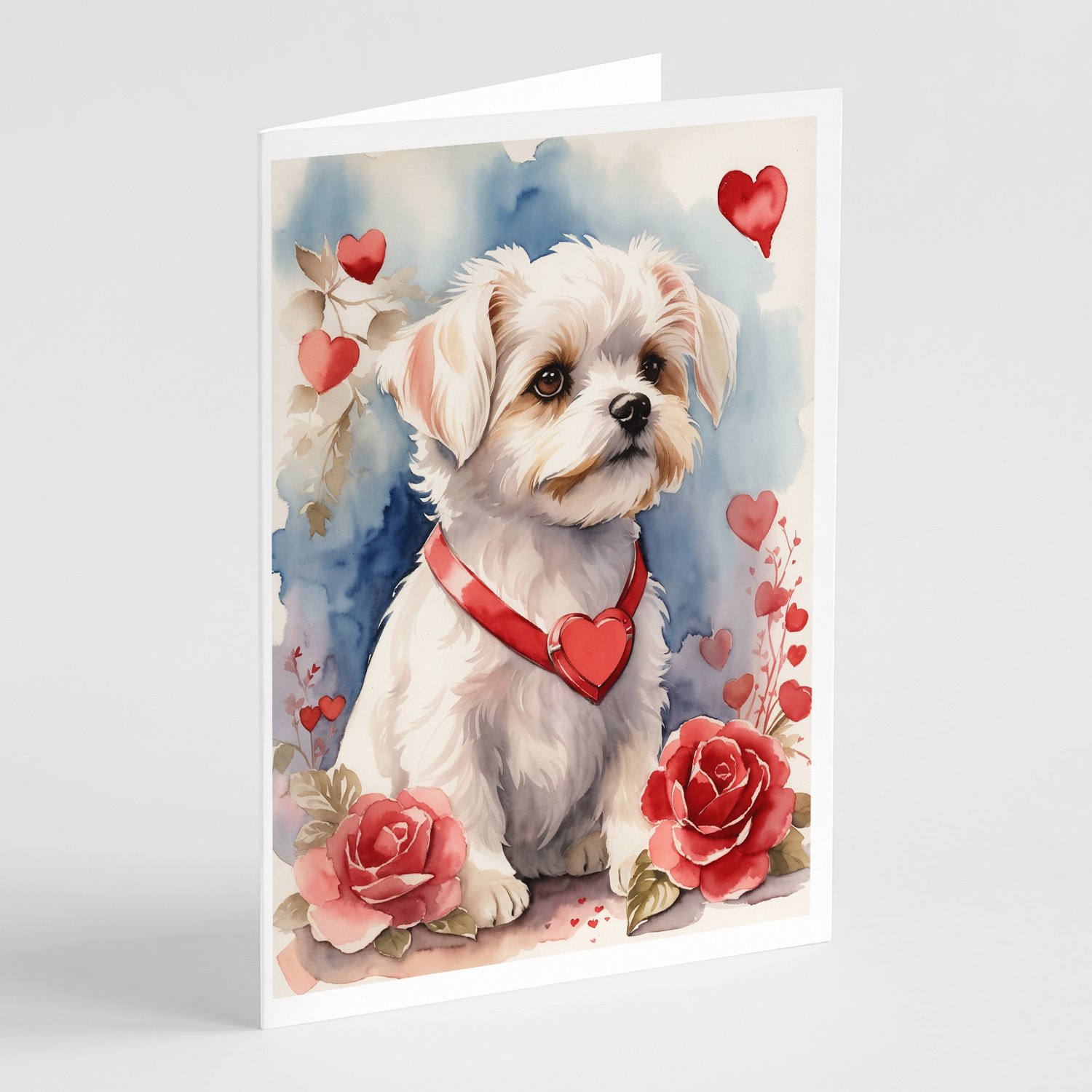 Maltese Valentine Roses Greeting Cards Pack of 8 Blank Cards with Envelopes Whimsical A7 Size 5x7 Blank Note Cards