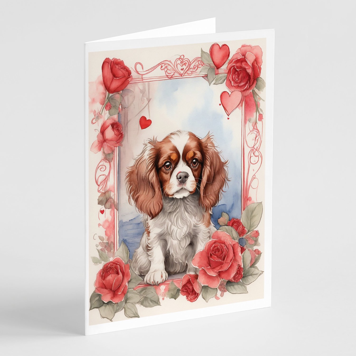 Cavalier Spaniel Valentine Roses Greeting Cards Pack of 8 Blank Cards with Envelopes Whimsical A7 Size 5x7 Blank Note Cards