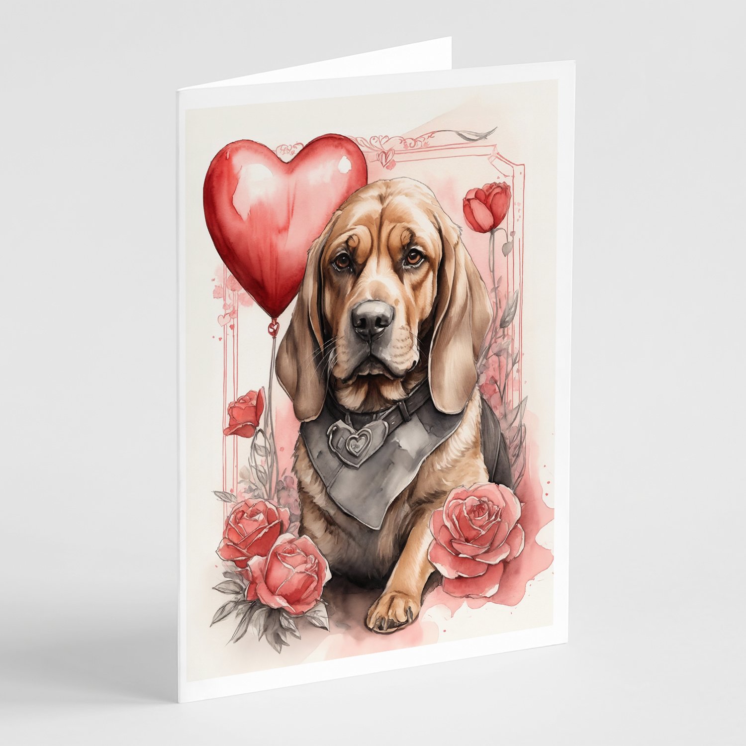 Greeting Cards Pack of 8 featuring breed specific Bloodhound artwork. Celebrate Valentine's Day with this Valentine's Day . Celebrate special moments with Caroline's Treasures Printed Greeting Card Pack. This pack includes eight beautifully folded 5x7 cards, accompanied by eight matching white envelopes. With blank interiors, these cards provide ample space for your personalized messages and heartfelt holiday greetings. Each card features captivating full-color artwork, meticulously printed in our facility on high-quality 80 lb cover stock or 216 GSM. The super smooth finish of the white cards enhances the visual impact of the artwork, creating a truly stunning presentation. Designed by our talented in-house artists or licensed artists, the artwork on these cards showcases their creativity and attention to detail. From vibrant illustrations to captivating designs, each card tells its own unique story. Whether it's for birthdays, anniversaries, holidays, or any special occasion, Caroline's Treasures Greeting Card Pack is the perfect way to convey your heartfelt sentiments. Share joy, love, and warm wishes with these exquisite cards and make every moment unforgettable.