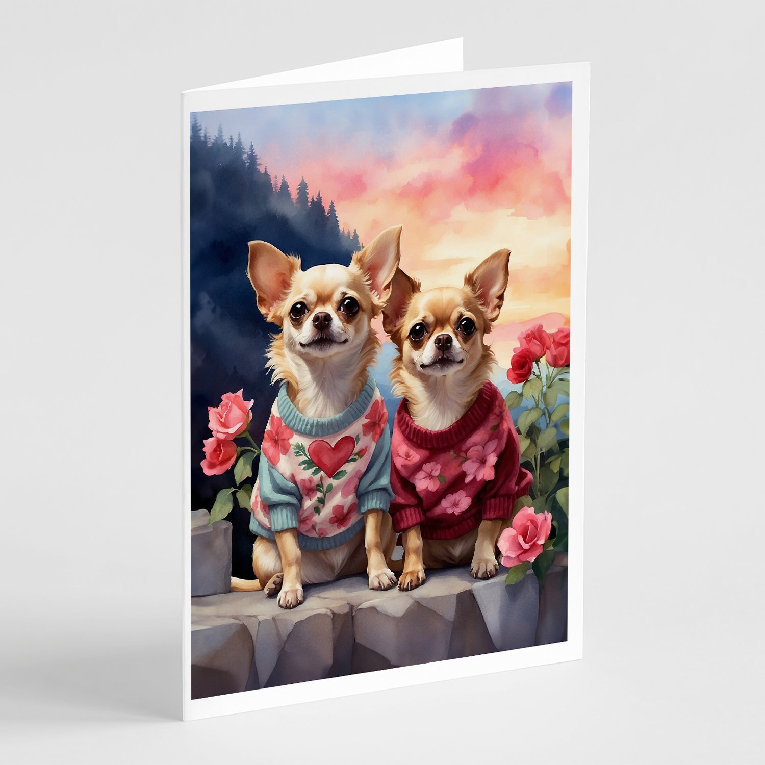 Greeting Cards Pack of 8 featuring breed specific Chihuahua artwork. Celebrate Valentine's Day with this Valentine's Day . Celebrate special moments with Caroline's Treasures Printed Greeting Card Pack. This pack includes eight beautifully folded 5x7 cards, accompanied by eight matching white envelopes. With blank interiors, these cards provide ample space for your personalized messages and heartfelt holiday greetings. Each card features captivating full-color artwork, meticulously printed in our facility on high-quality 80 lb cover stock or 216 GSM. The super smooth finish of the white cards enhances the visual impact of the artwork, creating a truly stunning presentation. Designed by our talented in-house artists or licensed artists, the artwork on these cards showcases their creativity and attention to detail. From vibrant illustrations to captivating designs, each card tells its own unique story. Whether it's for birthdays, anniversaries, holidays, or any special occasion, Caroline's Treasures Greeting Card Pack is the perfect way to convey your heartfelt sentiments. Share joy, love, and warm wishes with these exquisite cards and make every moment unforgettable.