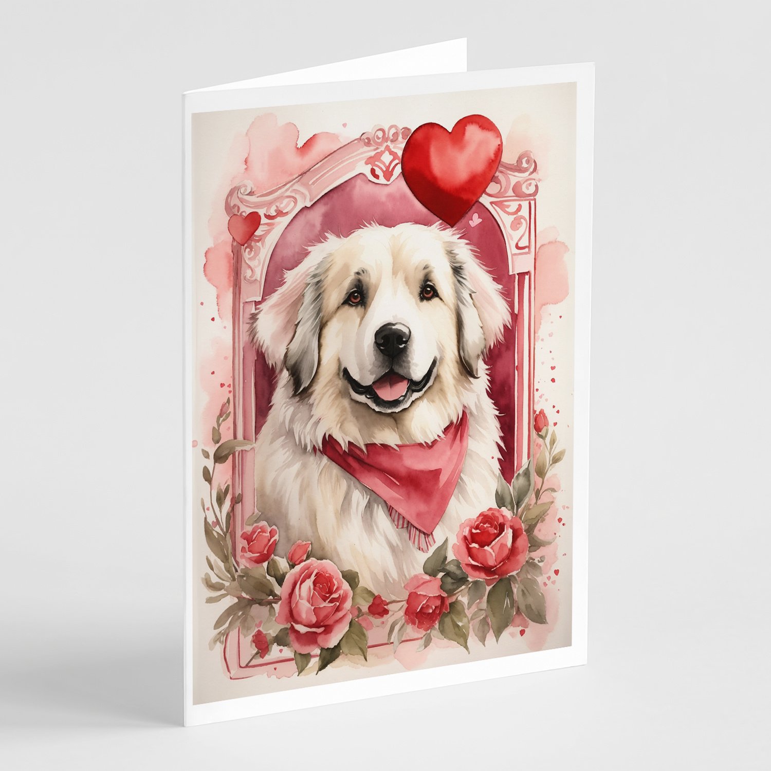 Greeting Cards Pack of 8 featuring breed specific Great Pyrenees artwork. Celebrate Valentine's Day with this Valentine's Day . Celebrate special moments with Caroline's Treasures Printed Greeting Card Pack. This pack includes eight beautifully folded 5x7 cards, accompanied by eight matching white envelopes. With blank interiors, these cards provide ample space for your personalized messages and heartfelt holiday greetings. Each card features captivating full-color artwork, meticulously printed in our facility on high-quality 80 lb cover stock or 216 GSM. The super smooth finish of the white cards enhances the visual impact of the artwork, creating a truly stunning presentation. Designed by our talented in-house artists or licensed artists, the artwork on these cards showcases their creativity and attention to detail. From vibrant illustrations to captivating designs, each card tells its own unique story. Whether it's for birthdays, anniversaries, holidays, or any special occasion, Caroline's Treasures Greeting Card Pack is the perfect way to convey your heartfelt sentiments. Share joy, love, and warm wishes with these exquisite cards and make every moment unforgettable.