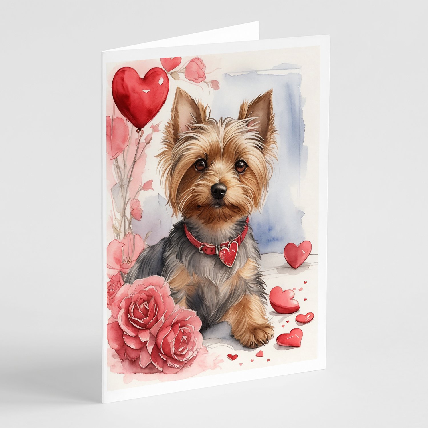 Silky Terrier Valentine Roses Greeting Cards Pack of 8 Blank Cards with Envelopes Whimsical A7 Size 5x7 Blank Note Cards