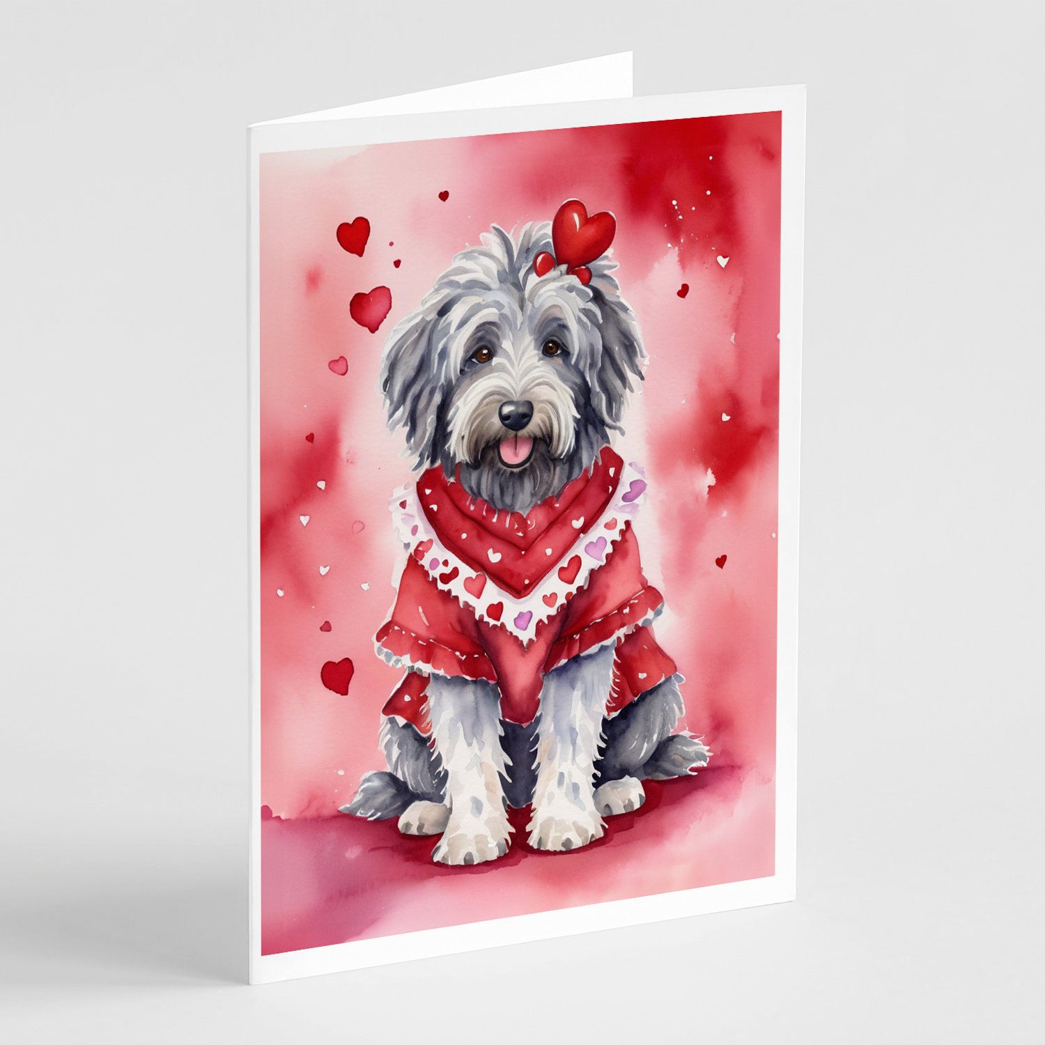 Greeting Cards Pack of 8 featuring breed specific Bergamasco Sheepdog artwork. Celebrate Valentine's Day with this Valentine's Day . Celebrate special moments with Caroline's Treasures Printed Greeting Card Pack. This pack includes eight beautifully folded 5x7 cards, accompanied by eight matching white envelopes. With blank interiors, these cards provide ample space for your personalized messages and heartfelt holiday greetings. Each card features captivating full-color artwork, meticulously printed in our facility on high-quality 80 lb cover stock or 216 GSM. The super smooth finish of the white cards enhances the visual impact of the artwork, creating a truly stunning presentation. Designed by our talented in-house artists or licensed artists, the artwork on these cards showcases their creativity and attention to detail. From vibrant illustrations to captivating designs, each card tells its own unique story. Whether it's for birthdays, anniversaries, holidays, or any special occasion, Caroline's Treasures Greeting Card Pack is the perfect way to convey your heartfelt sentiments. Share joy, love, and warm wishes with these exquisite cards and make every moment unforgettable.